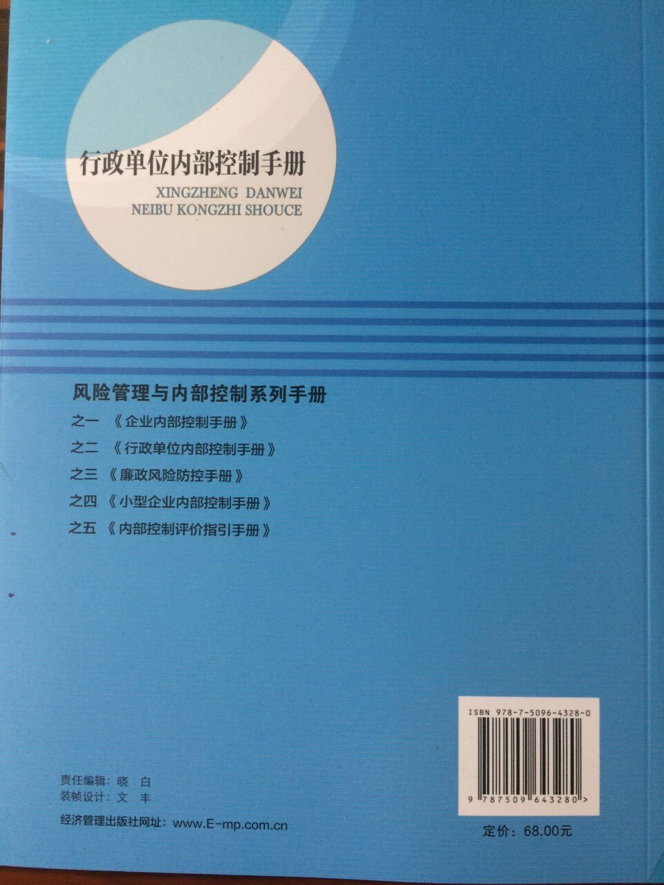 上海财苑企业管理咨询有限公司主编的风险管理与内部控制系列手册之二-《行政单位内部控制手册》由经济管理出版社出版,目前已正式发布啦!