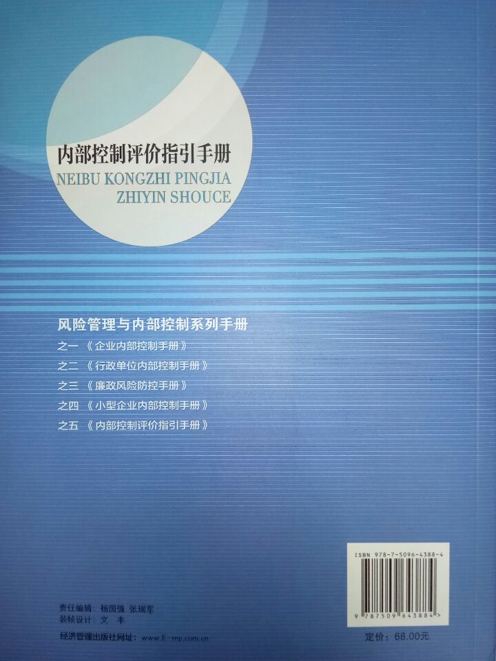 上海财苑企业管理咨询有限公司主编的风险管理与内部控制系列手册之五-《内部控制评价指引手册》由经济管理出版社出版,目前已正式发布啦!