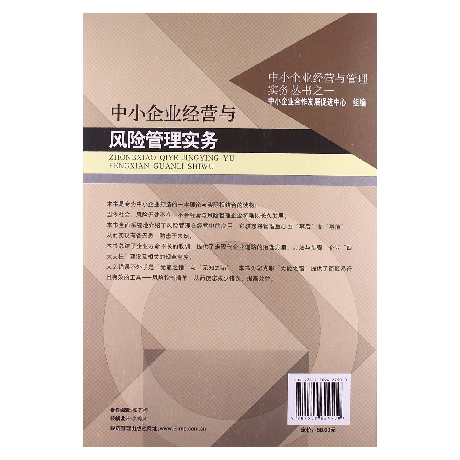 上海财苑企业管理咨询有限公司主编的中小企业经营与管理实务丛书之一-《中小企业经营与风险管理实务》已经发布中小企业经营与管理实务丛书由上海财苑企业管理咨询有限公司主编,及其他政府及企业界资深人士共同参与编写。目的就是帮助中小企业克服企业存在的“短板”和“瓶颈”,推行现代企业管理制度,提升中小企业经营管理和抵御风险水平。